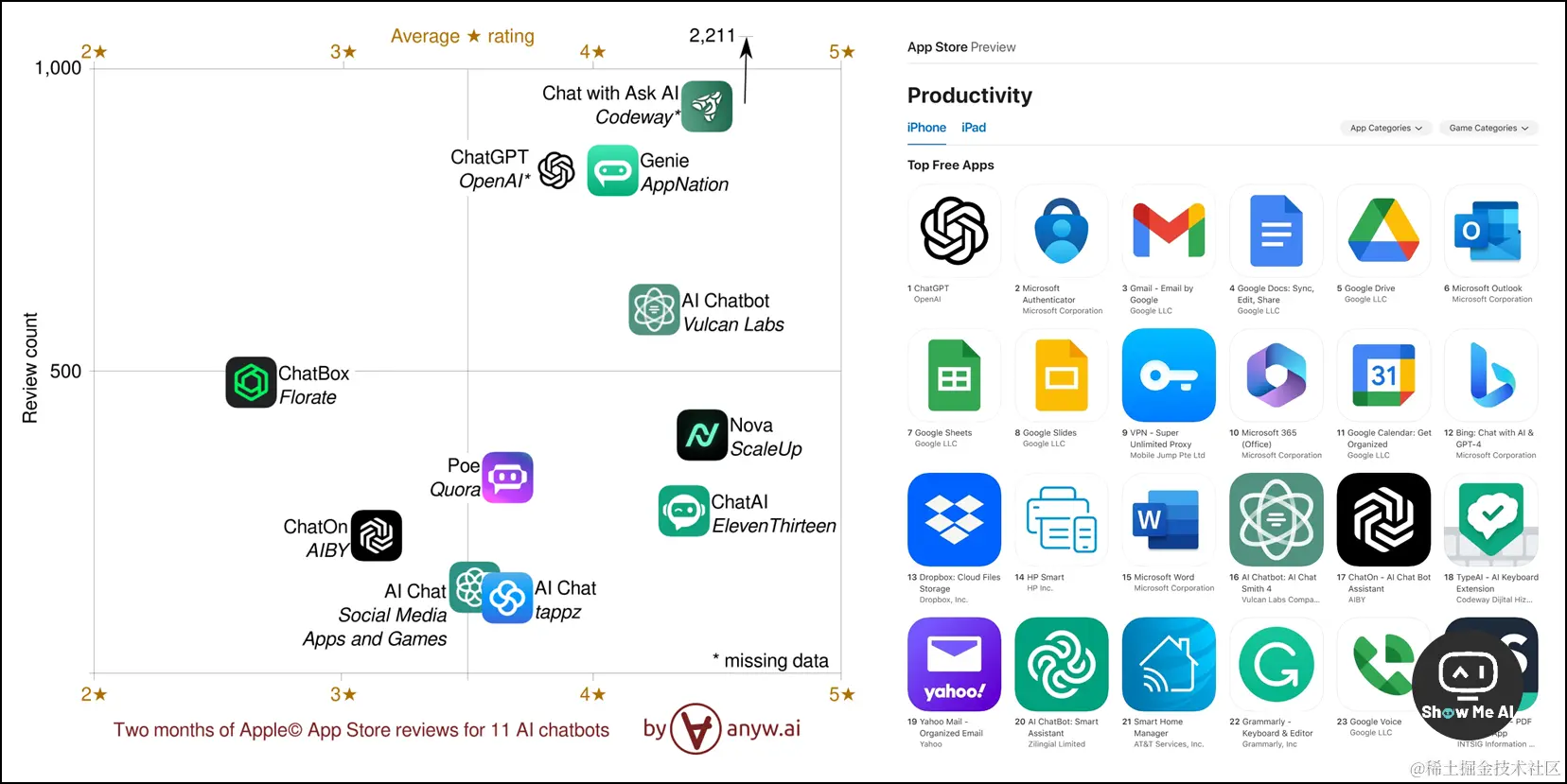是的没有 Character.AI,原因是它在 Apple Store 里属于「Entertainment」分类,跟这篇文章的工具们不在一个榜单 emmm