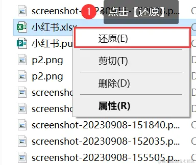 第2步:如果文件在回收站中,单击它,并将其 【还原】 。