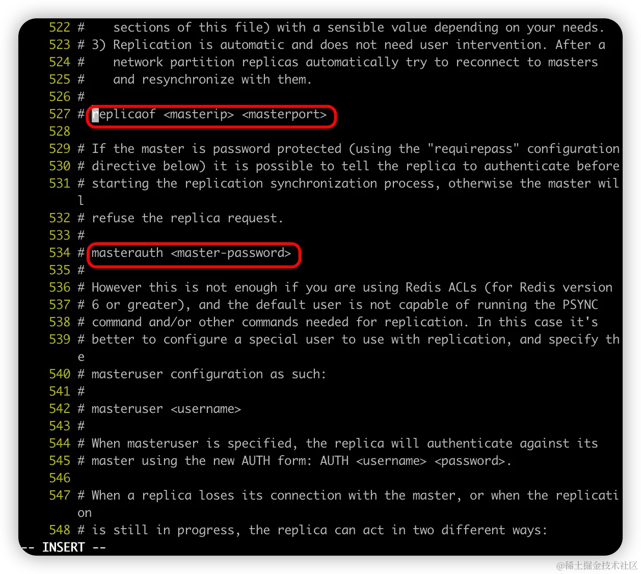 - 从机(slave)访问主机(master)的通行密码masterauth,必须从机(slave)需要配置,此步骤主机(master)不用配置