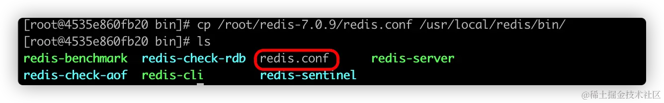 cp /root/redis-7.0.9/redis.conf /usr/local/redis/bin/