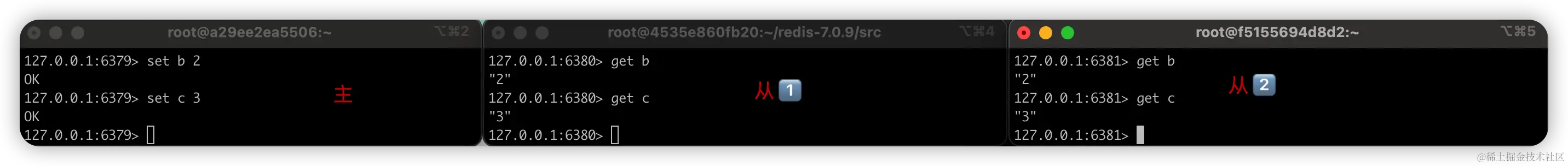 在主里存入值,可以看到在两台从机(slave)中都可以获取到