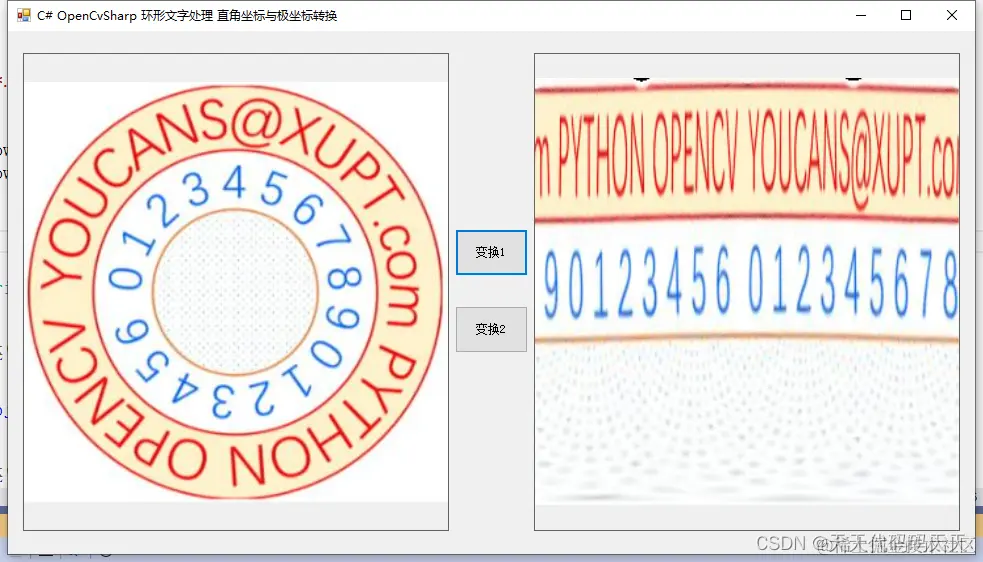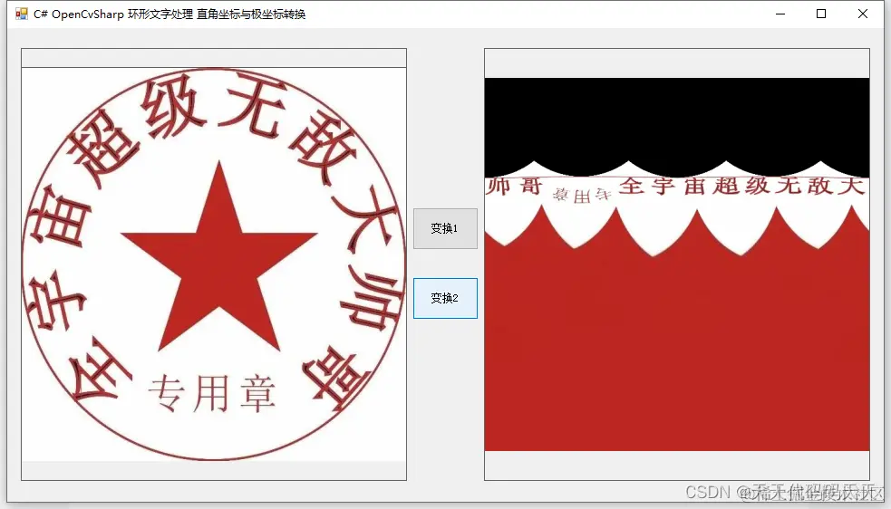 Cv2.LinearPolar(image, result_image, new Point2f(cx, cy), maxR, InterpolationFlags.Linear);
