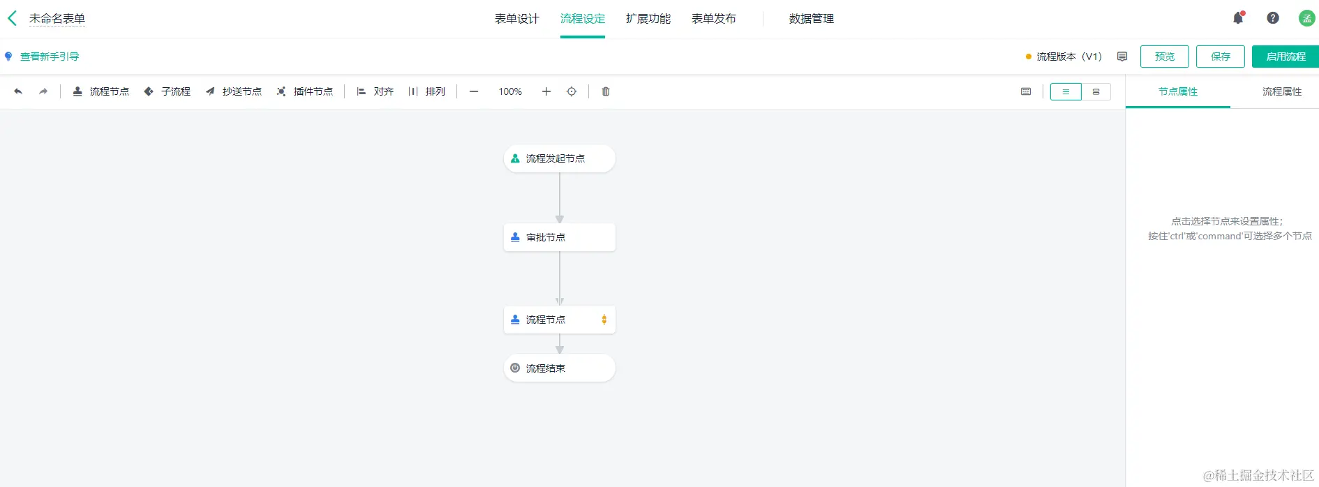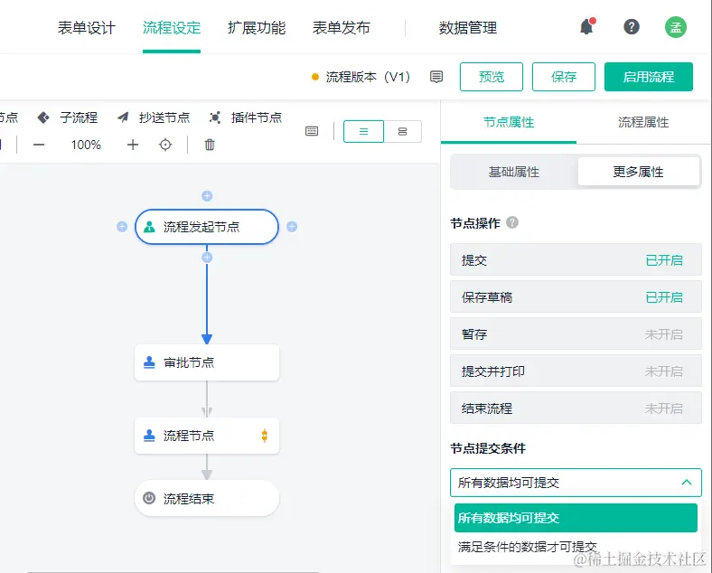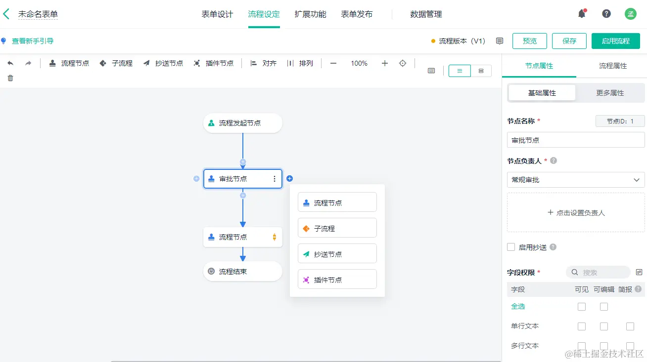 简道云的流程节点较少,仅有 4 项,流程节点、子流程、抄送节点和插件节点,可能无法满足一些专业的数据处理需求。
