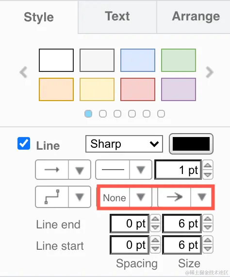 风格调色板,设置图形的填充色和轮廓颜色。 点击左右箭头可以浏览更多的样式。