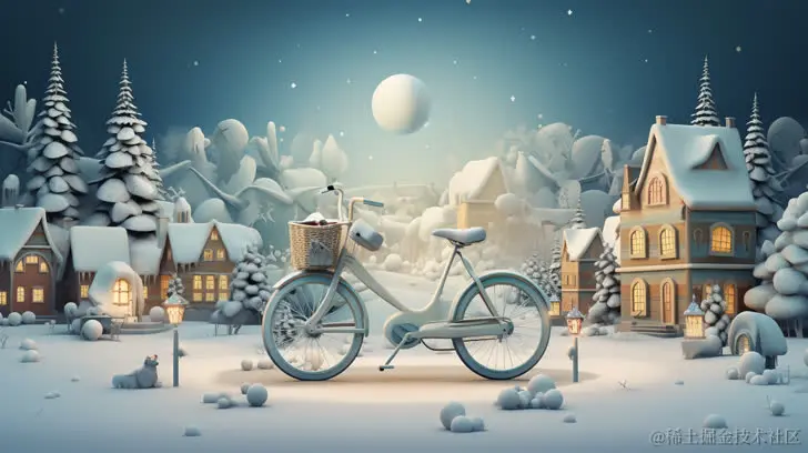 (主题),圣诞装饰品装饰成村庄、雪和假期,采用平面设计风格的插图、全息、互动作品、m42 安装、媚俗和营地魅力、数字印刷、梦幻般的插图