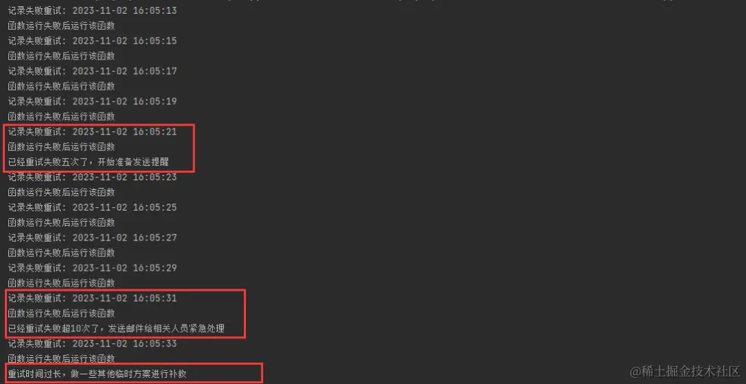 print("已经重试失败超10次了,发送邮件给相关人员紧急处理")