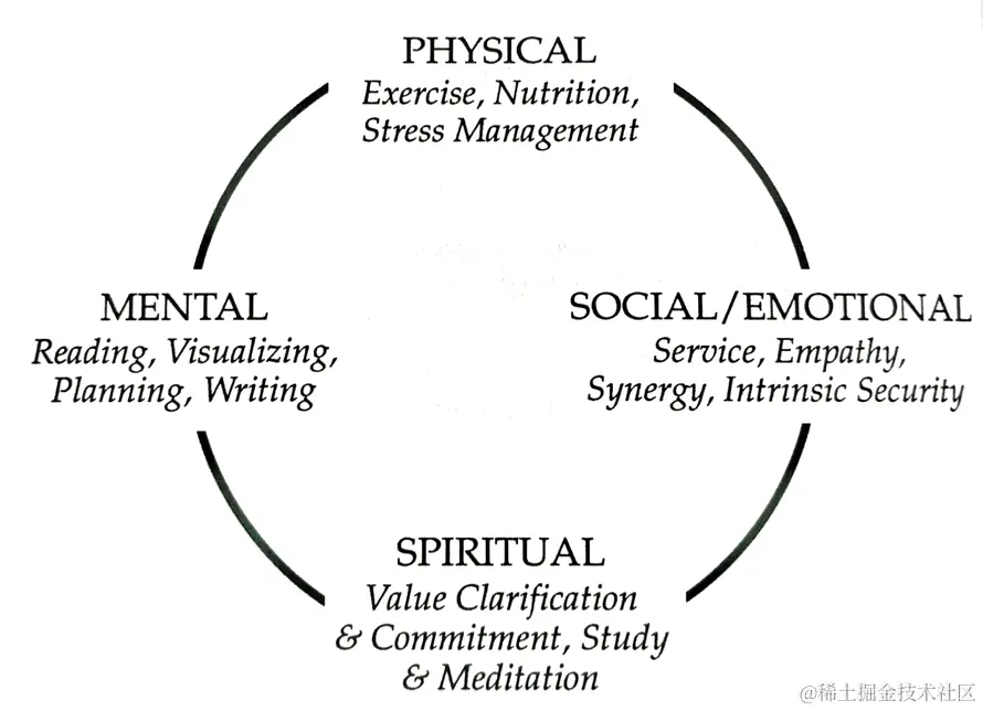 留出时间来体力上、智力上、情感上和精神上更新和提高自己,以持续获得成功。