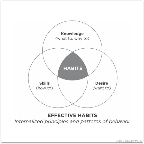 - 科维将习惯定义为知识、技能和欲望的交集。知识是理论范式,是做什么和为什么。技能就是怎么做。欲望是动力,是想要做的。斯蒂芬解释说,要让某些事情成为我们生活中的习惯,我们需要同时拥有这三者。