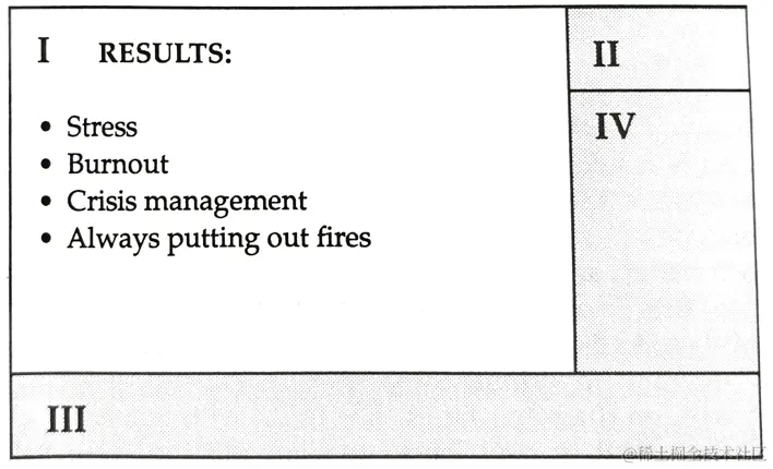 - 第一象限。 如危机和最后期限等重要且紧急的任务可能会耗尽我们并导致倦怠。尽管我们必须解决这些问题,但你不应该以扑灭火为任务宣言。