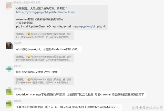 前几天在Python最强王者交流群【鶏啊鶏。】问了一个selenium驱动器的问题,一起来看看吧。问题描述:有没有selenium用的比较多的大佬 想问问一些selenium的定时任务 关于chrome老更新的话 driver怎么才能保持更新呢