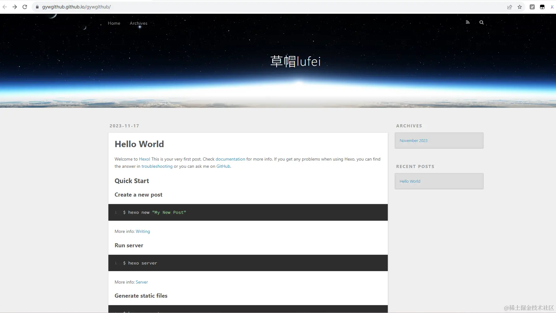 下一步准备把社区中发布的文章同步到这个博客站点,修改一下默认主题,或者基于默认主题自己用代码调整优化一下,以及添加评论功能等等,让整个博客内容丰富起来