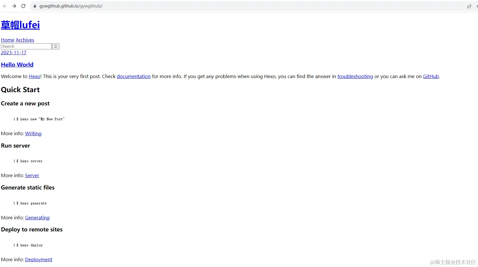 修改后再次部署应该就能正常访问了,我的博客访问地址: gywgithub.github.io/gywgithub