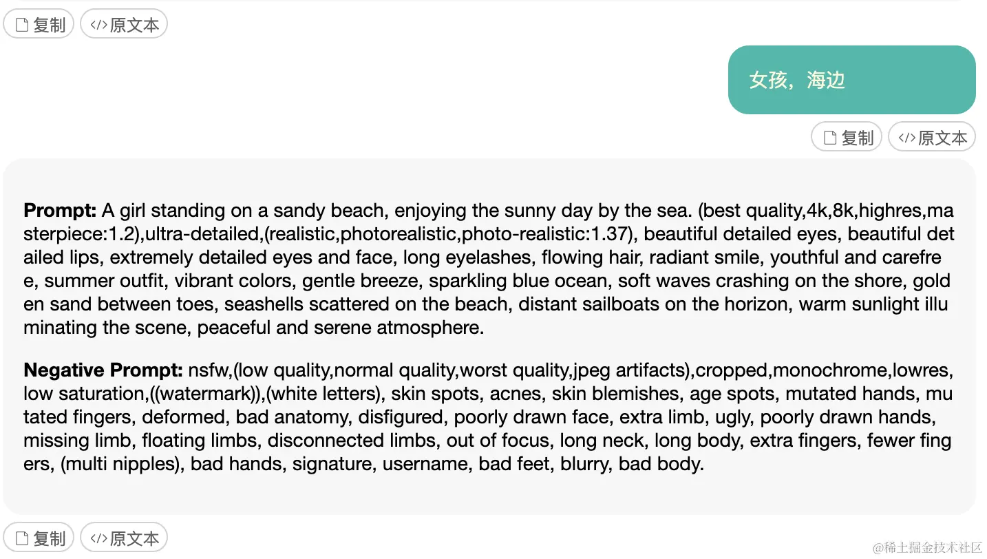 然后我们给它一些关键词,它就会自动生成提示词了: