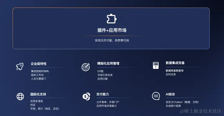 明道云CPO薛宗铭详细介绍了明年团队将主攻的七大能力特性——插件和应用市场,企业级特性,精细化应用管理,数据集成完备,国际化支持,支付能力,以及AI结合。