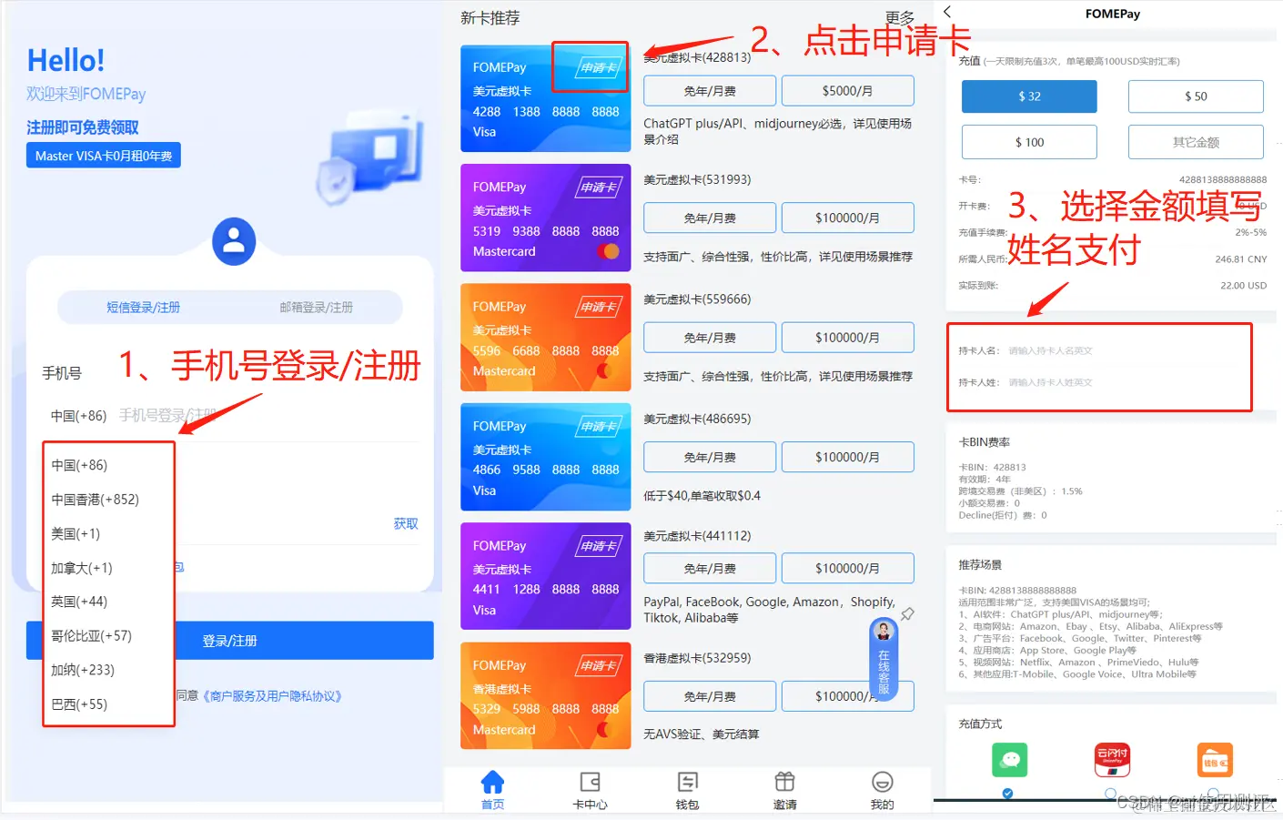 - 办理Fomepay的428813美卡,可以支持绑定AppStore,点击获取。