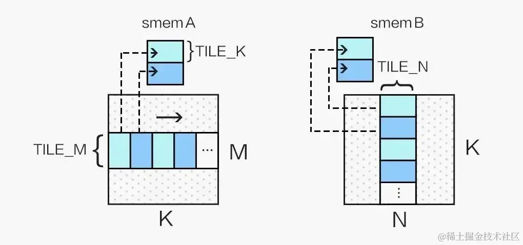 load_gmem_tile_to_smem(B, i, smemB);
