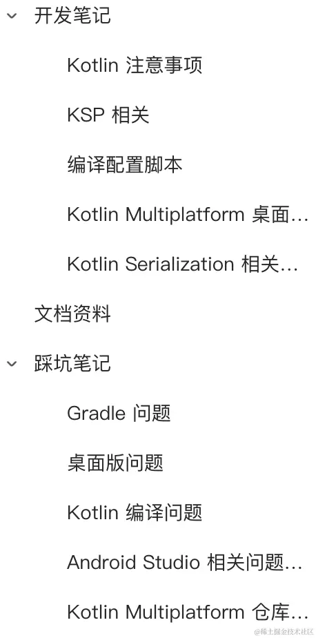 我从 17 年使用 kotlin 到现在,看着 kotlin 一步步支持协程、跨平台,越来越成熟,kotlin 用户也越来越多。但是从我最近几年在公司收到的简历和面试的情况来看,大多数人都停留于简单的使用,能用好作用域函数、委托、泛型等功能的人不多,了解协程机制的更是少之又少。目前国内对 Kotlin Multiplatform 的使用还在起步阶段,掘金上关于 Kotlin Multiplatform 的博客也基本停留于简单介绍、跑个官方 demo、官方文档和资讯的搬运,真正深入踩坑的很难找到,生态太弱了。所以我之前建立了一个分享小群,试图组织大家一起完善相关的使用文档、踩坑记录,这是我们已经沉淀下来的一些资料。因为掘金发群和个人信息会被吞,群聊可以通过我的公众号“流沙三七”进入。
