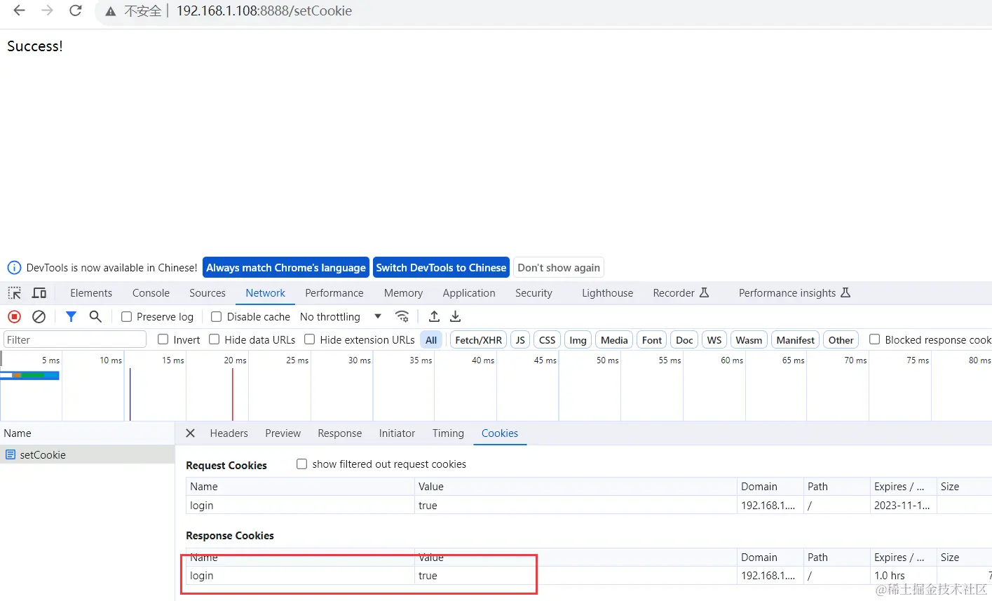 设置cookie效果: