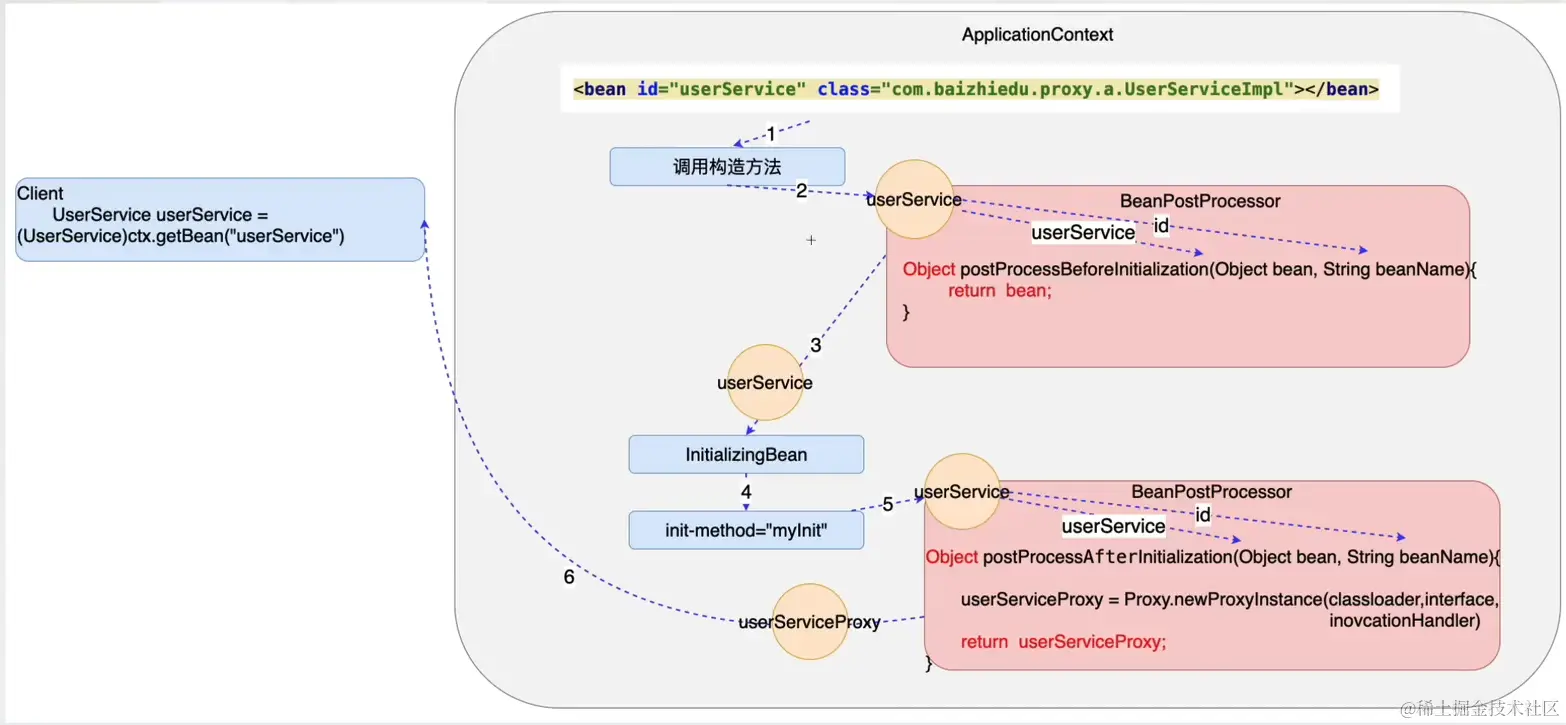 <bean id="proxyBeanPostProcessor" class="com.baizhi.factory.ProxyBeanPostProcessor"/>