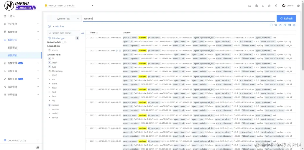 本文将搭建一个统一日志管理平台。使用 Filebeat 采集 OS 中的日志(其他日志大同小异),发送到 Easysearch 中。最后通过 Console 进行日志的可视化查询与分析。