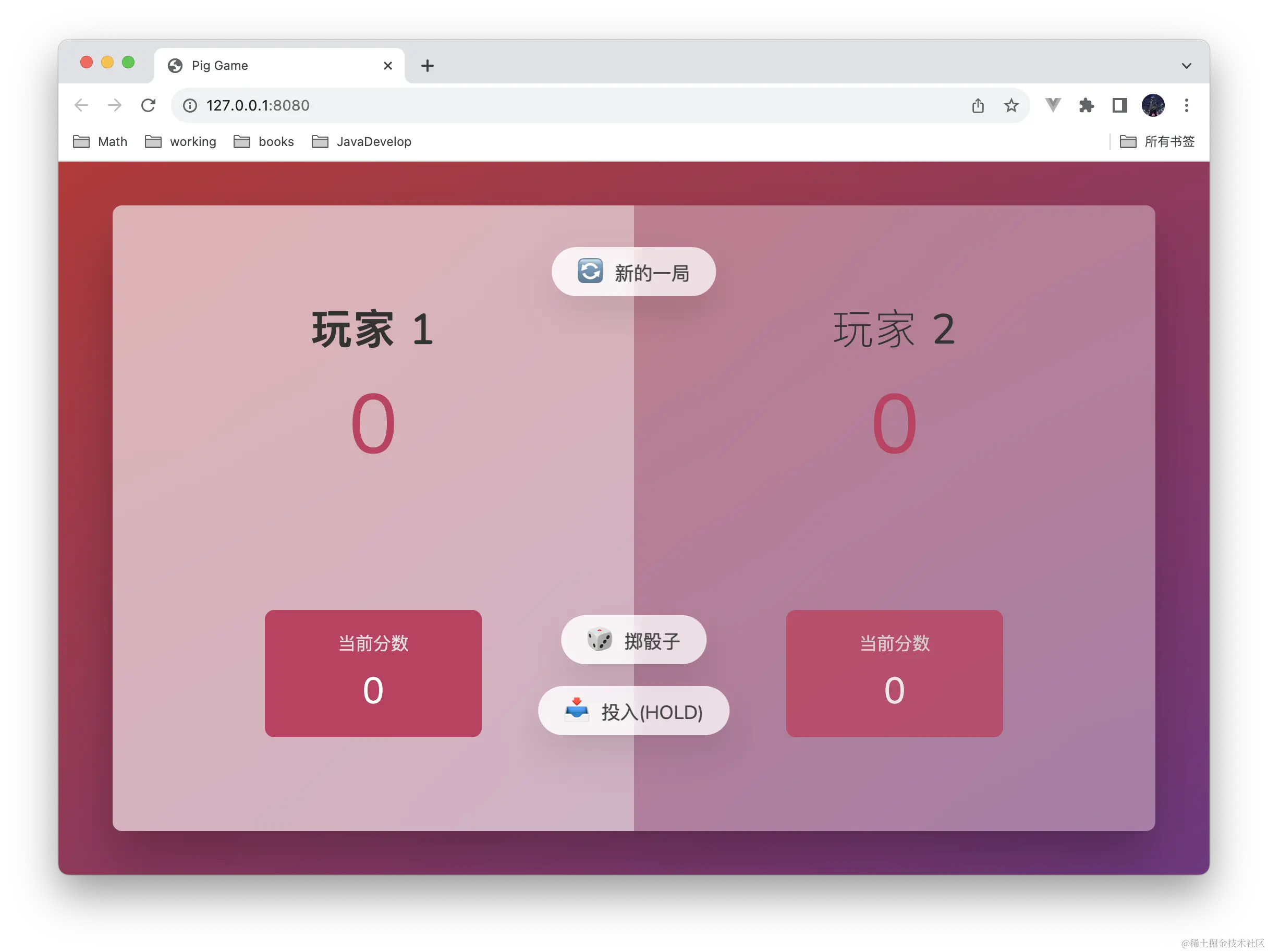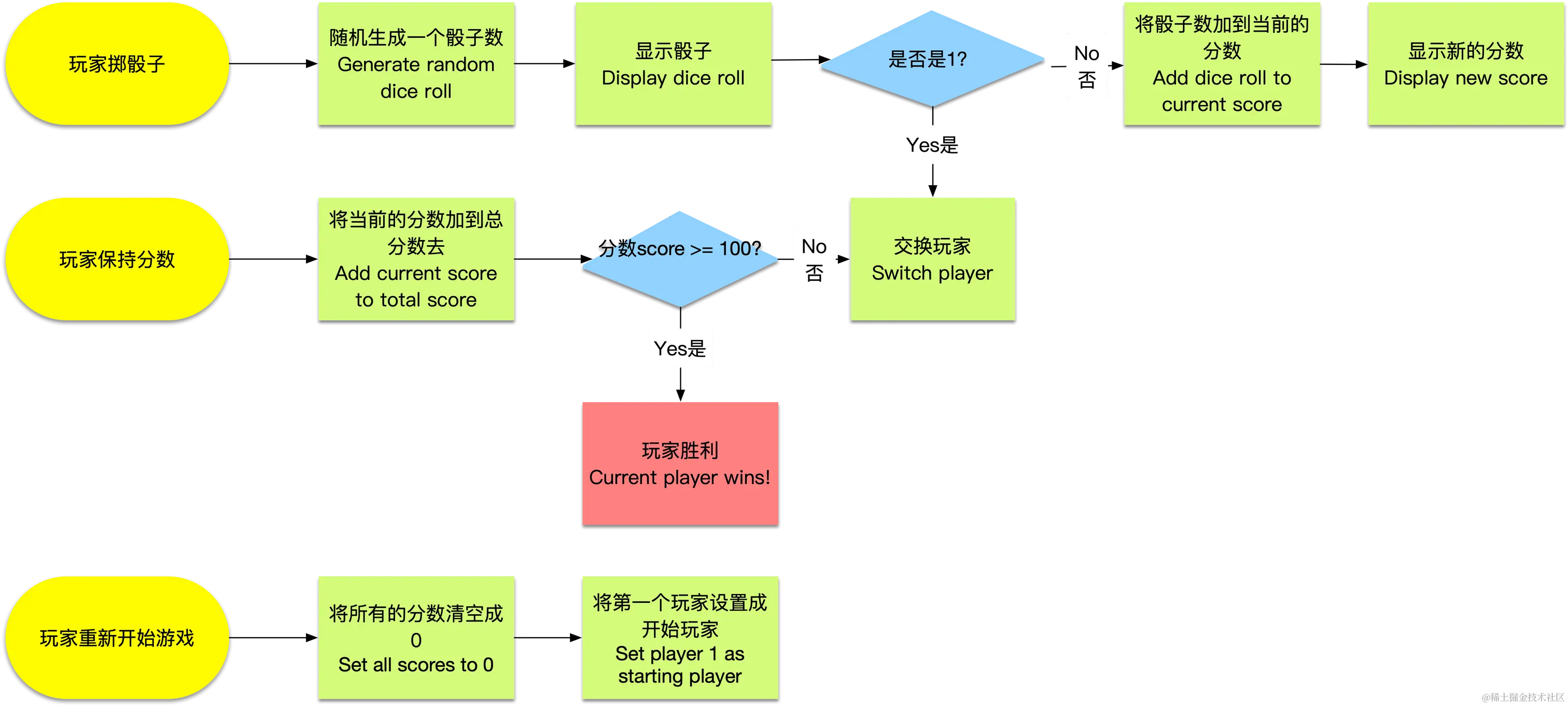playing = false; //当玩家赢时,要将状态设置为false,终止roll和hold按钮的操作