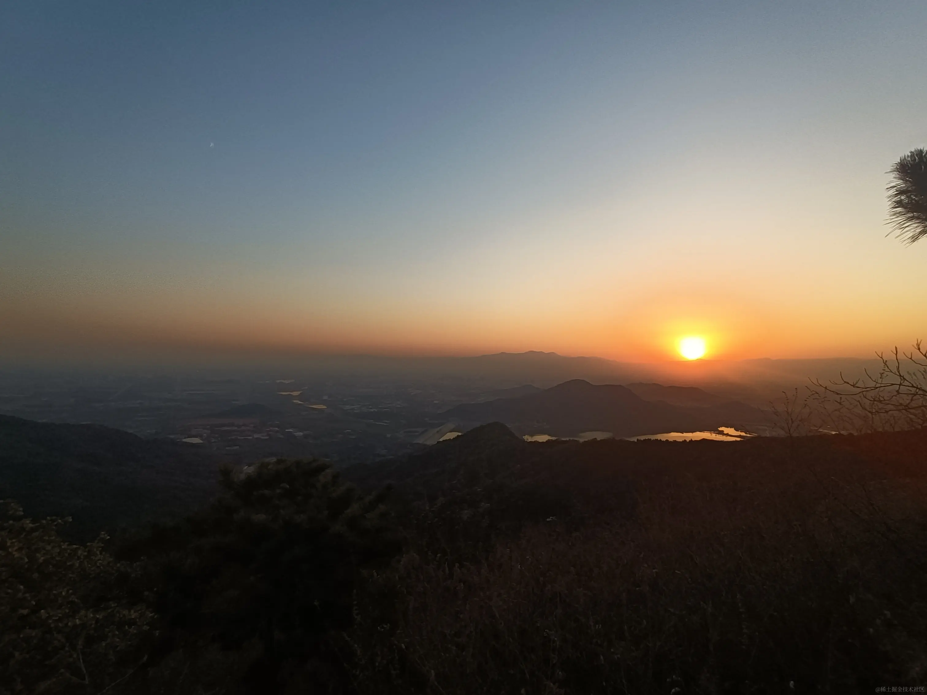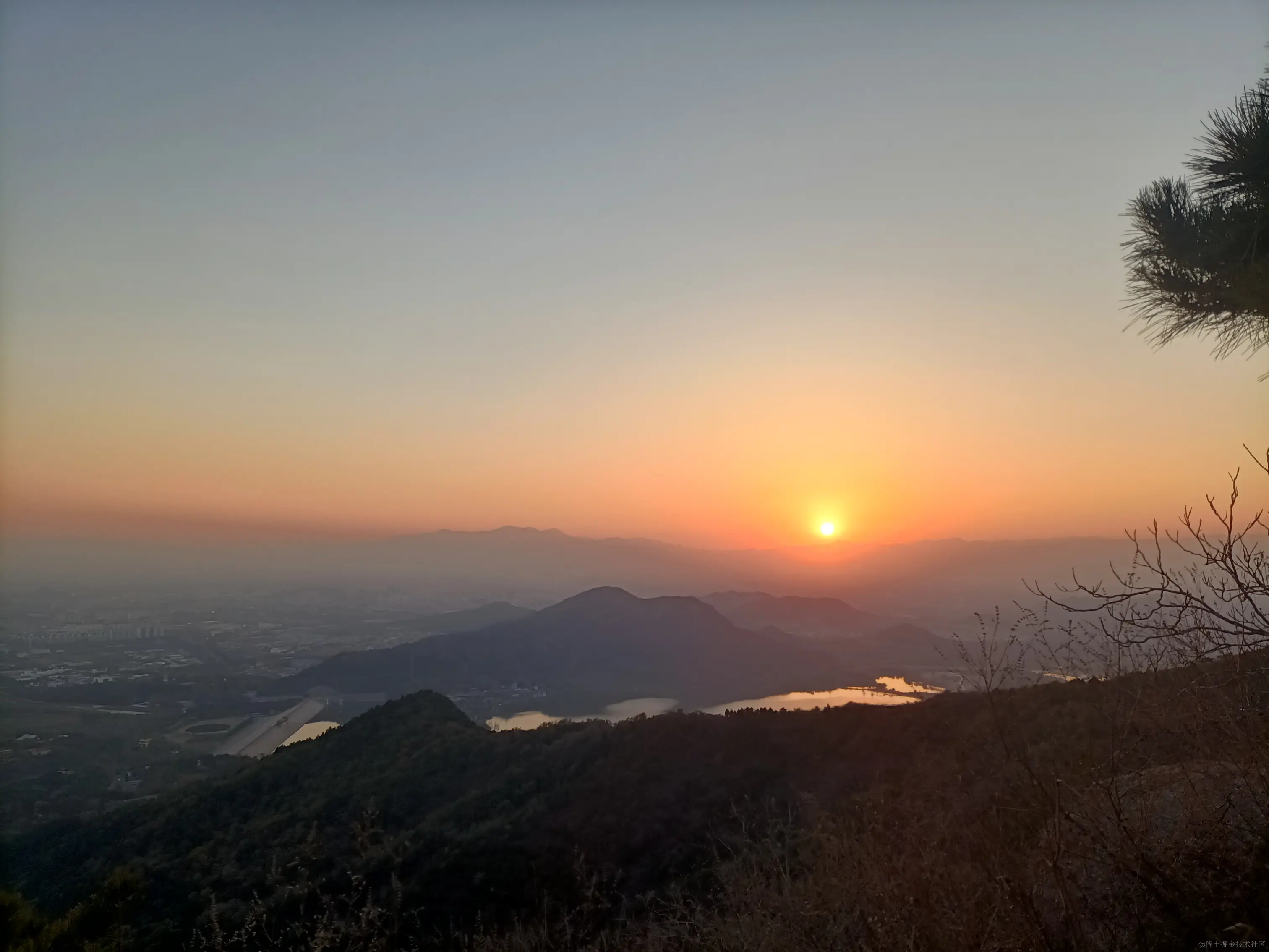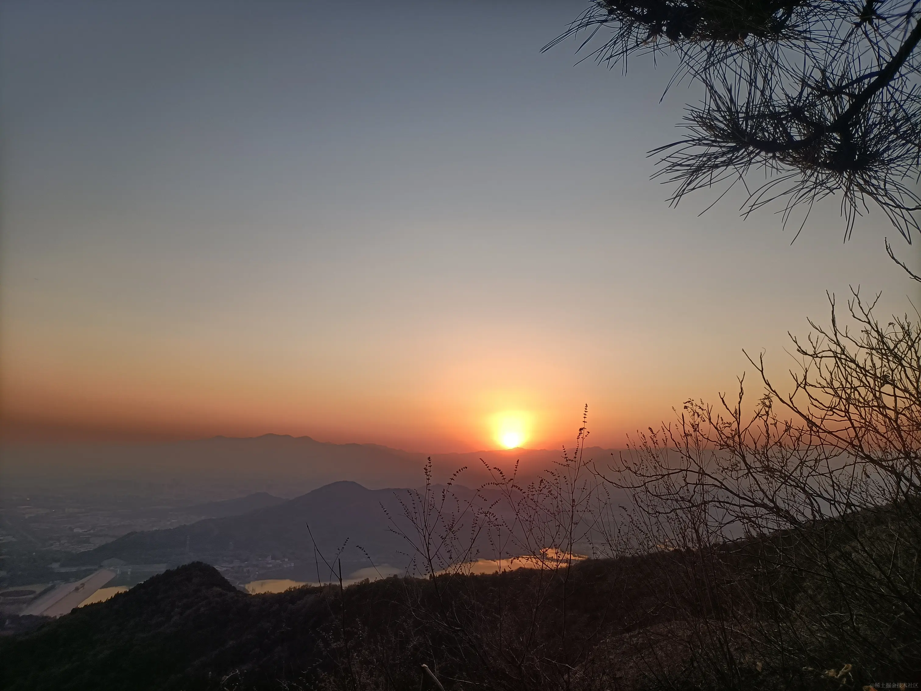 开始的山景似乎没特别惊艳的,因为也许还没到半山腰,景色不是很丰富,但也有不同的植被,也能看到一些小山的景色。一开始觉得没什么难爬的,可能会稍微耗点体力,但是走了一小阵后发现确实有些小累,于是我们开始稍微歇会儿。歇会儿过后又继续前进,路上也碰到了一些来爬山的人,不过也不多。我们一路走着,路上也有不一样的景色,当我们走着走着时,发现太阳似乎快要落山了,有一个角度望去特别的好看,突然的这样的景色也让我给惊艳到了。