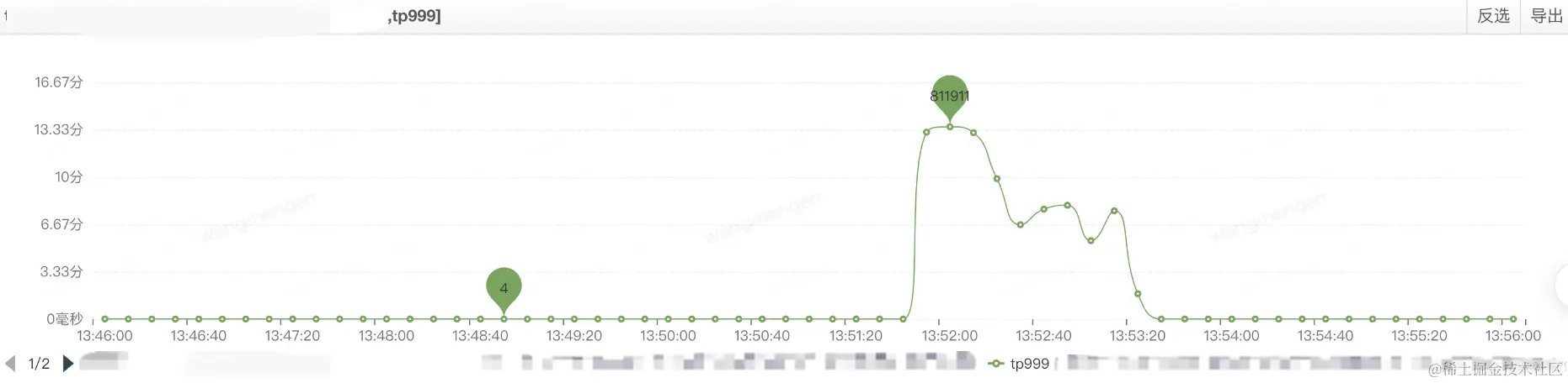 11.4日13:52分查看命中接口SGM的tp999激增,同时我马上给R2M运维老师打电话沟通得知原因。