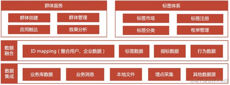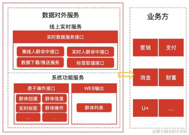 我本次所备战的系统人群画像(CDP)是一个以“用户为中心”,围绕数据融合、标签生产、群体数据服务(人群命中、标签取值、人群下载)、人群分析与洞察、人群应用与服务全链路提供产品能力,赋能业务完成精细化营销与深度运营,实现数据驱动全域运营智能增长,是京东科技超p0级系统,最核心的底层服务之一,是科技侧最重要的实现精准营销的手段。目前画像平台支持了16+跨BGBU二级部门,日均调用量100亿+次,它被应用到支付,消金,财富等各种核心业务的用户拉新,交易转化,促活等核心链路中。