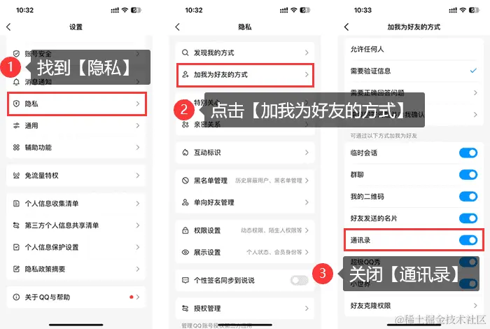 qq同步通讯录怎么关闭?出于隐私保护,如果不想让别人通过手机号添加您的QQ,那么我们可以将通讯录关闭。通过以下的设置,别人将无法通过手机号添加您的QQ。