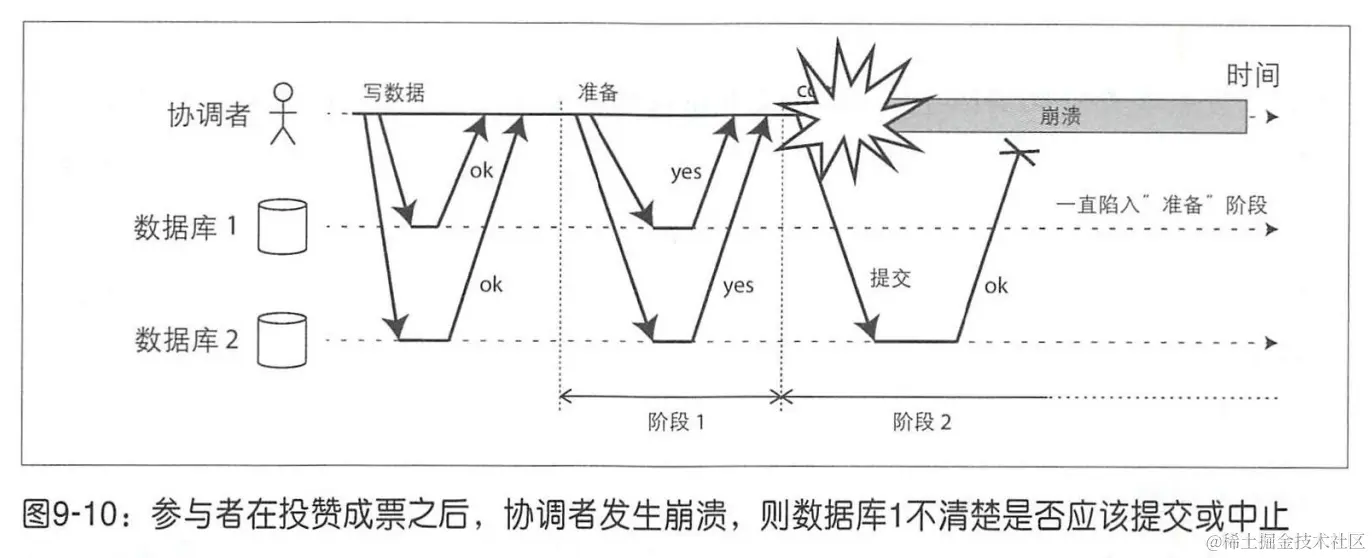 即使重启数据库服务器也不能让其从卡住中恢复,在一个正确实现的 2PC 系统中,参与者在重启后必须仍然持有事务相关锁(否则就会违反其承诺,进而原子性保证),这是一种非常棘手的情况。