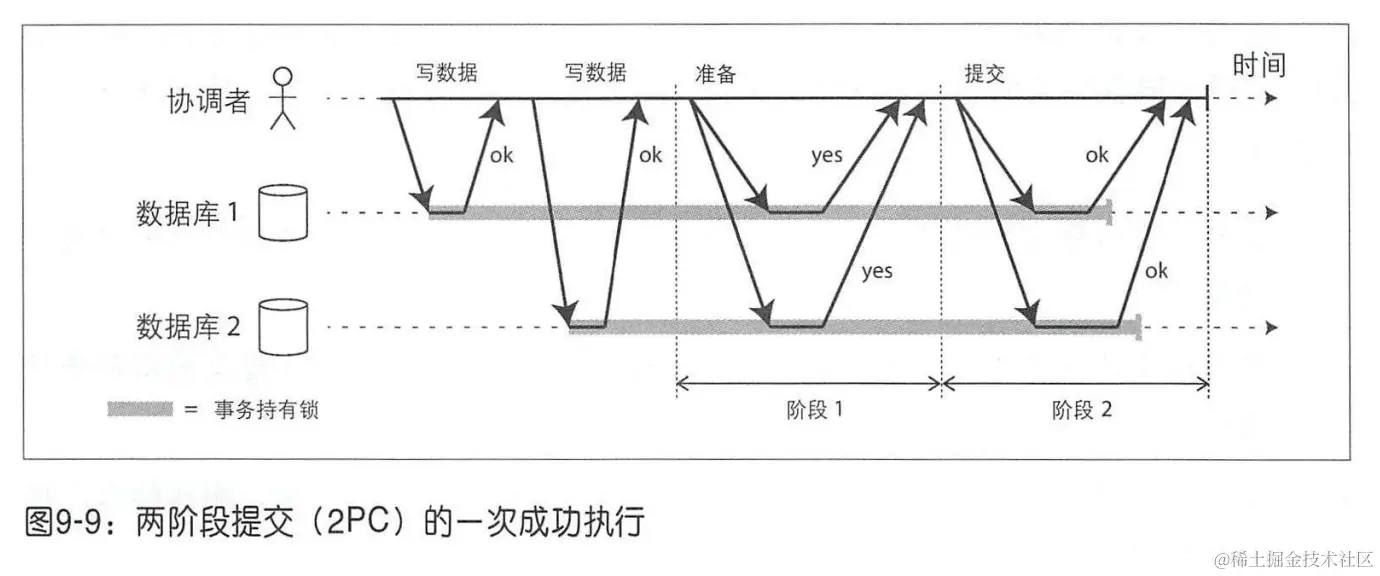 数据库在提交或者中止事务前不能够释放获取的这些锁。因此,在使用两阶段提交时,一个事务必须在其处于未定状态期间一直持有锁。如果协调者在宕机后花了 20 分钟才重新启动起来,则对应参与者的锁就要持有 20 分钟。如果参与者日志由于某种原因丢掉了,这些锁会被永远的持有——除非系统管理员会手动释放它们。
