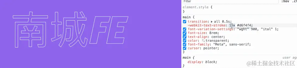 请看以下在浏览器中调试-webkit-text-stroke的效果。