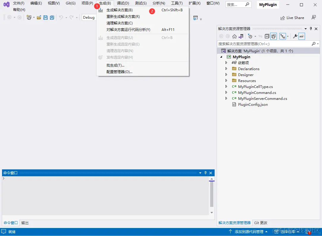 在VisualStudio 里找到并点击菜单 “生成->生成解决方案”。