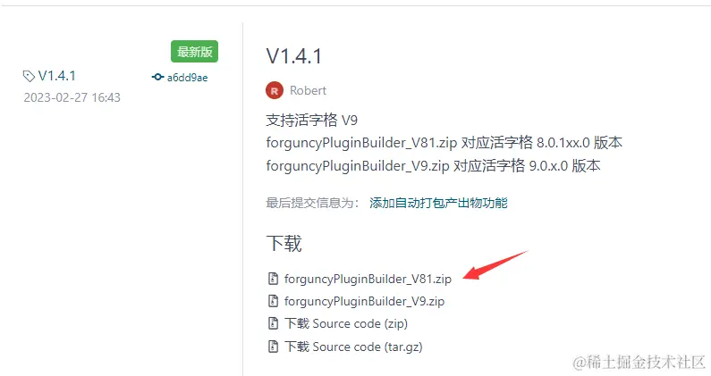 打开发行版页面后点击下载 forguncyPluginBuilder.zip 文件。