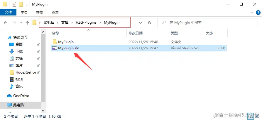在“文档\HZG-Plugins\MyPlugin”目录下找到“MyPlugin.sln”文件,双击打开。