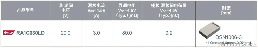 全球知名半导体制造商ROHM(总部位于日本京都市)开发出一款小型且高效的20V耐压Nch MOSFET*1“RA1C030LD”,该产品非常适用于可穿戴设备、无线耳机等可听戴设备、智能手机等轻薄小型设备的开关应用。