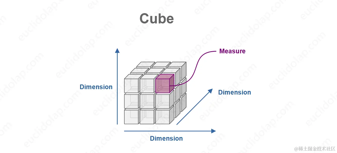 EuclidOLAP采用了立方体(Cube)和维度(Dimension)作为数据模型,如下所示: