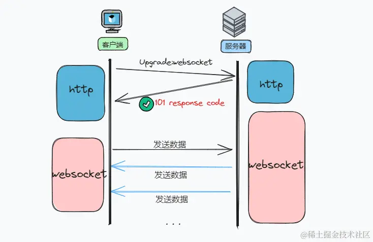 而websocket是利用http协议,然后加上一些特殊的header头进行握手Upgrade升级操作,升级成功后就跟http没有任何关系了,之后就用websocket的数据格式进行收发数据。