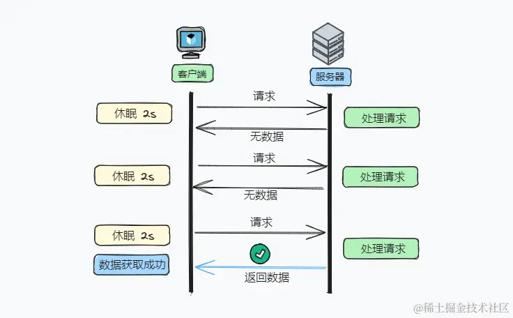 这种方式本质上还是客户端不断发送请求,才形成客户端能实时接收服务端数数据变化的假象。
