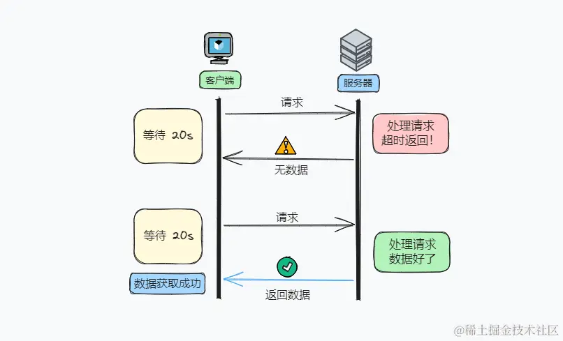 而长轮询方式是服务器收到客户端发来的请求后,想挂起请求,服务器端不会直接进行响应,在超时时间内(比如20S),接收请求和处理请求进行响应。