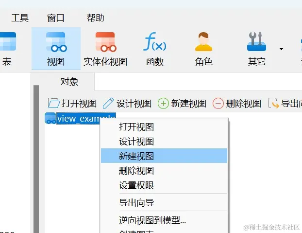 视图让用户访问一组表,就像它是单个数据一样。你可以使用视图来限制访问行。在主窗口中,点击“视图”来打开视图的对象列表。