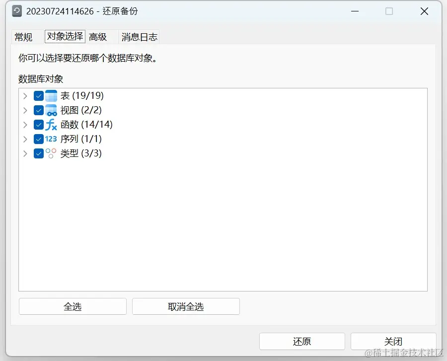 内置备份和还原工具让你备份或还原你数据库内的对象。