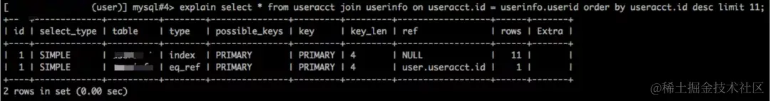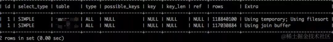 我们首先看type级别两个表的级别都是ALL,说明该条语句没有用到索引,做了全表扫描是最差的情况