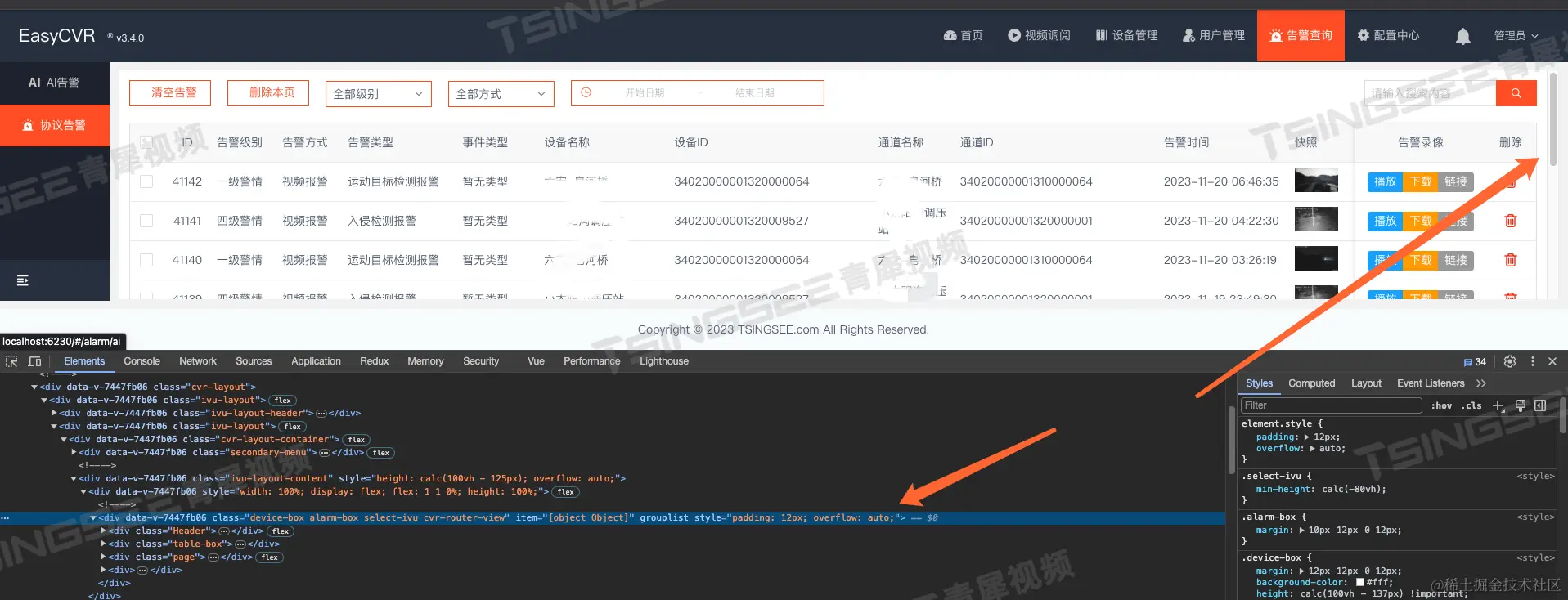 有用户反馈,在EasyCVR告警查询中,切换到20/30/40条每页时,不显示下拉拖动条了。