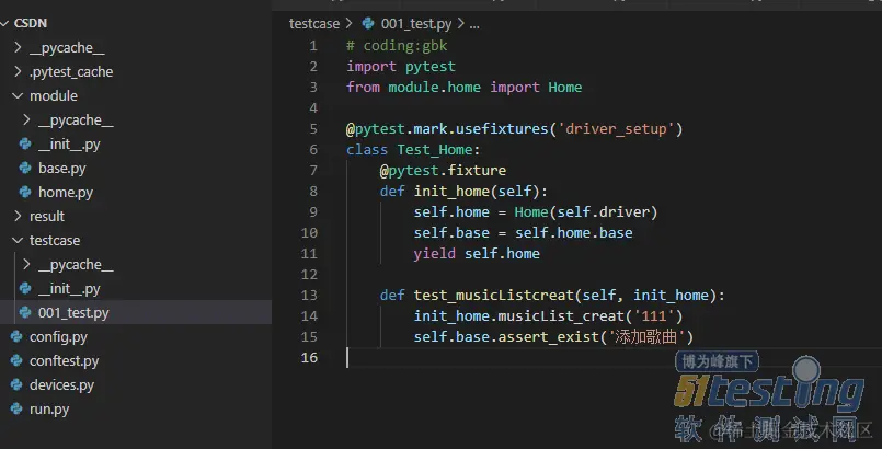 如图,我们先引入Base类,然后声明一个页面类(Home)去继承Base类。