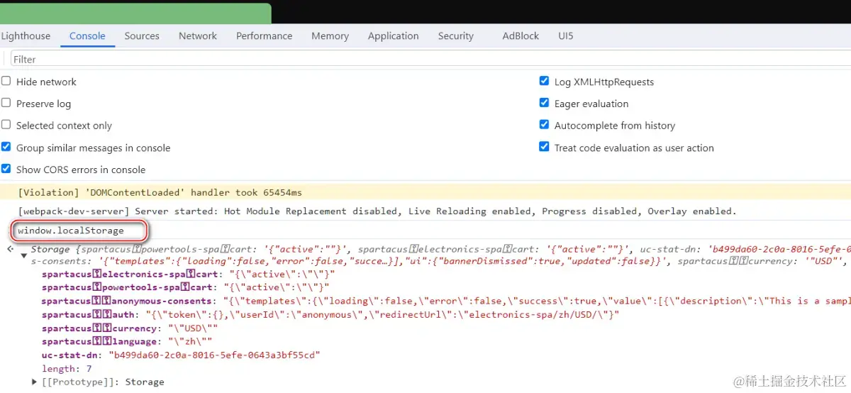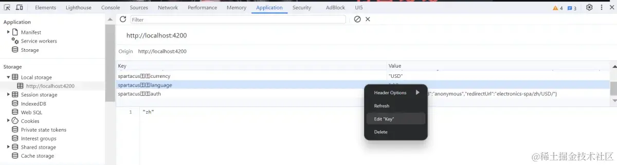我们在 Chrome 开发者工具 Application 面板里,可以清晰观察到这些 Key Value 键值对: