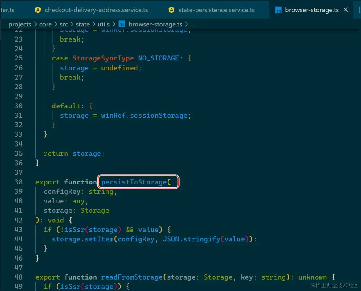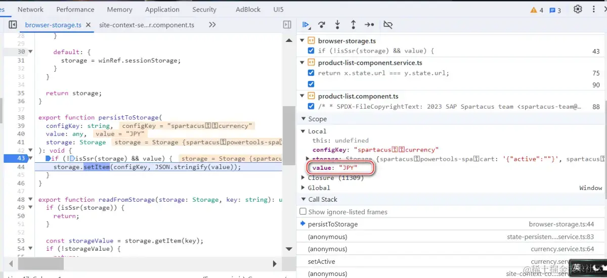 我们可以看到这个方法里调用代码第 44 行的 setItem,将 Angular UI 上用户选定的值写入到 LocalStorage 里。