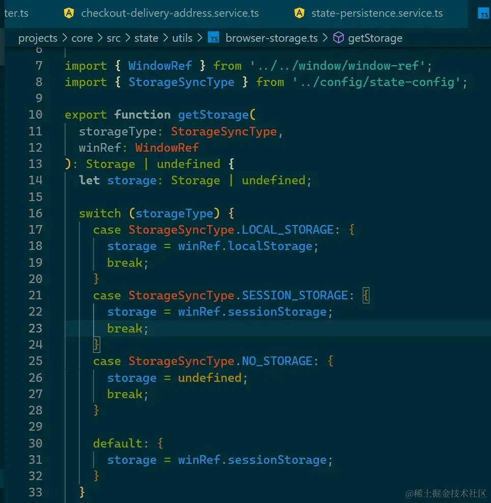 首先我们在 state-config.ts 文件里定义了 StorageSyncType 的枚举值: