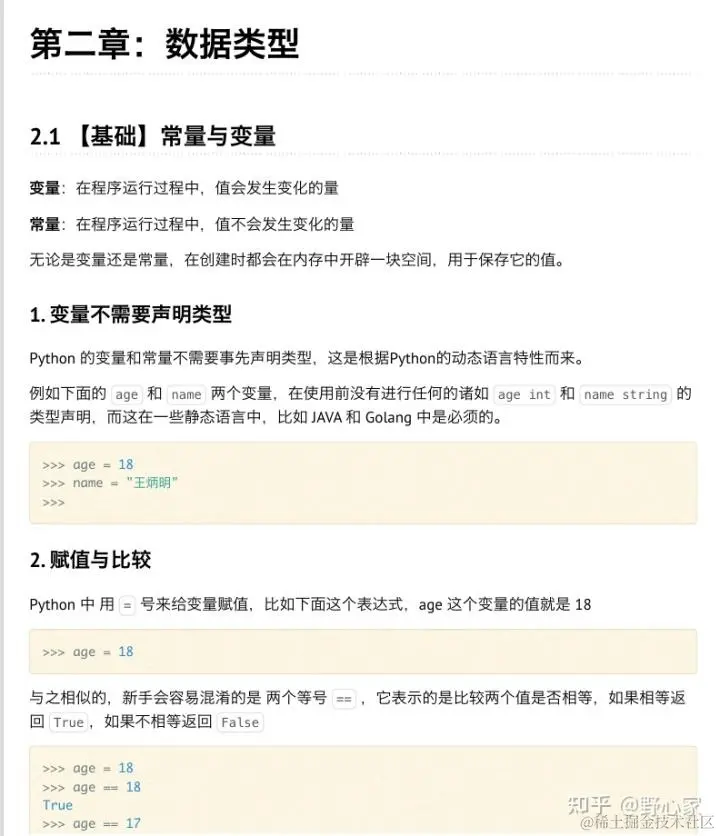 长见识了!字节跳动整理的python中文指南,电子版终于开放了 Theshy丶等风来 2023-11-20 228 阅读1分钟 想学习python?英语又不好怎么办?别慌!小编今天给大家整理了一份由字节跳动整理出来的【python中文指南】,该文档非常适合python小白学习,从python安装开始,一一介绍了出来,非常的详细!话不多说,直接上货! 文末获取 【python中文指南】如下: 第二章:数据类型 第三章:数据结构 第四章:控制流程 4.1 【基础】条件语句:if 第五章:学习函数 第六章:错误异常 获取方式: