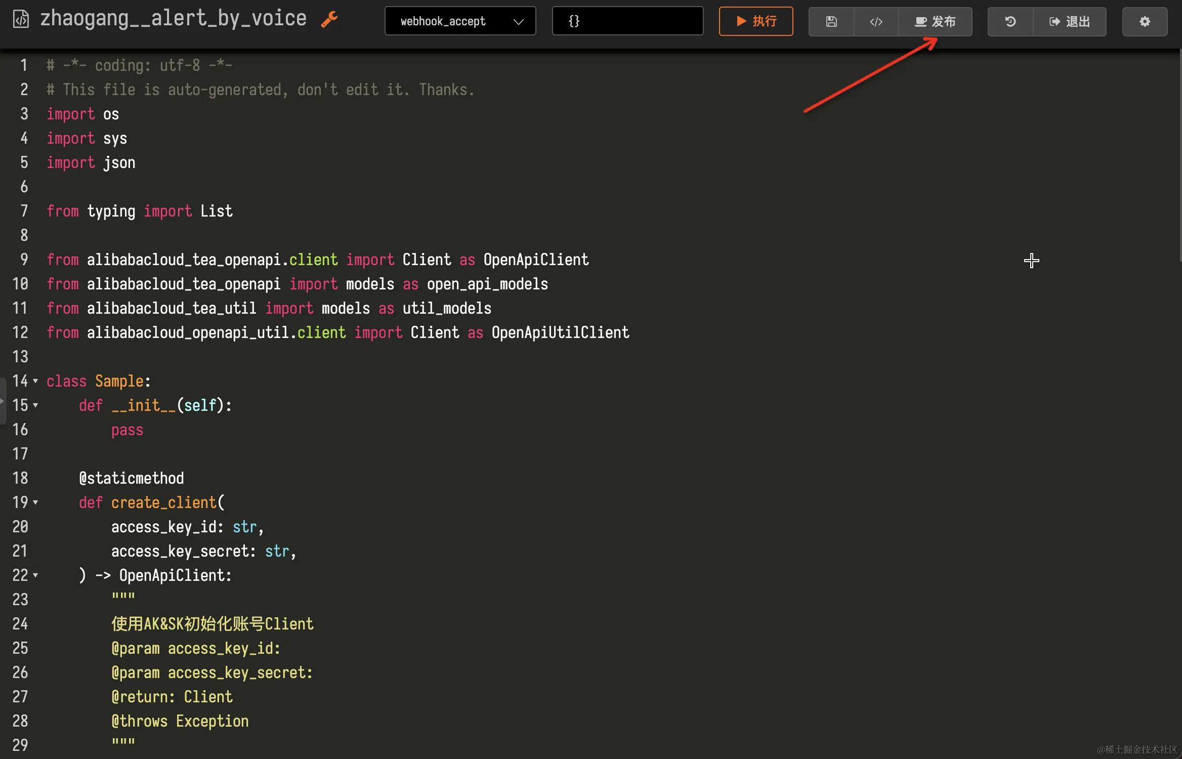 在Func平台完成脚本开发后,需要点击编辑界面的发布按钮,使脚本处在可引用的状态: